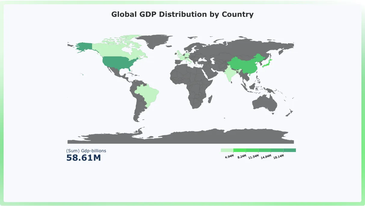 The U.S. map and world map are two of the most commonly used types for geographic data visualization. In this section, we’ll explore various map chart variants, using relevant data to showcase their unique features and how they enhance geographic storytelling.